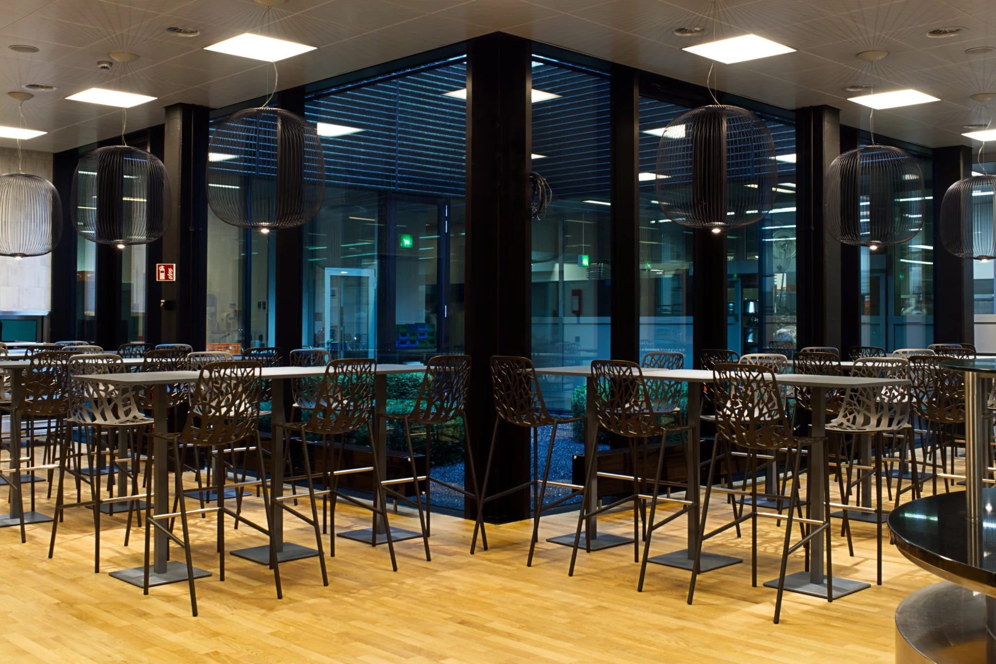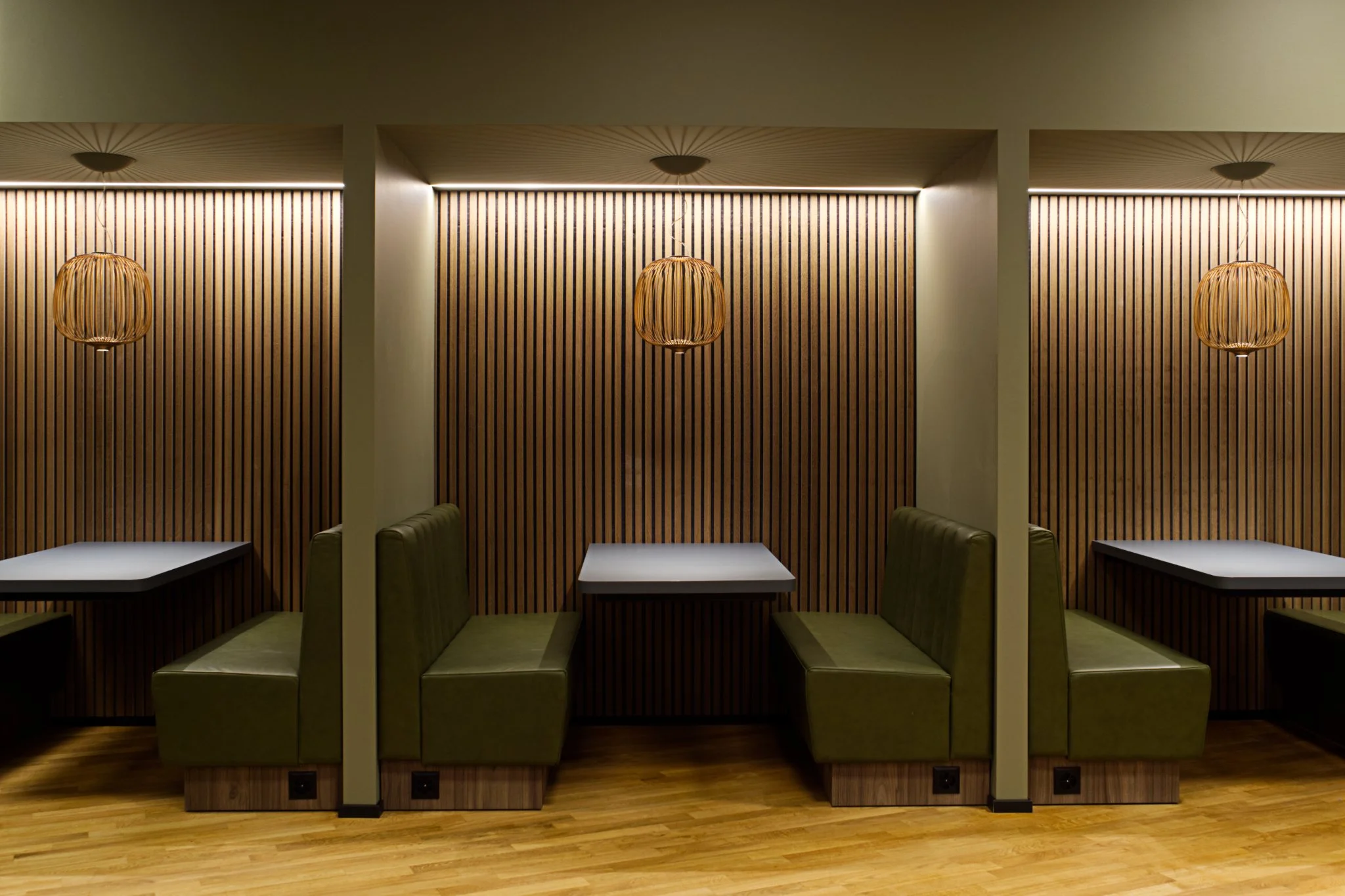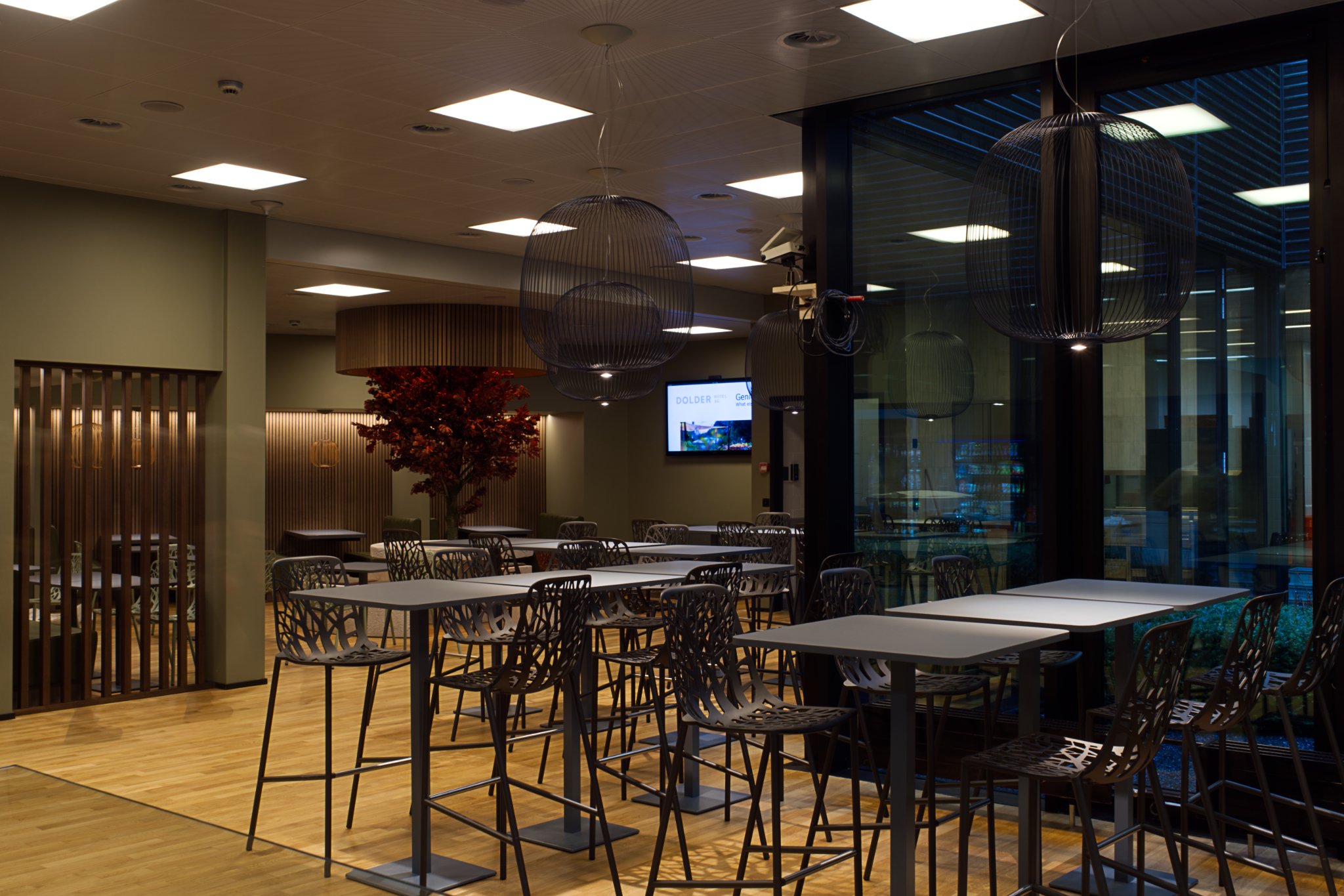 Bei der Planung wurde die dynamische Arbeitswelt ebenso berücksichtigt wie unterschiedliche Ernährungsgewohnheiten, bei denen oft schnelles, konzentriertes Essen notwendig ist. Gleichzeitig schafft der Raum Ruhe und Ausgleich, ohne durch zu viele optische Reize zu ermüden. Zudem sorgt er dafür, dass die Geräuschkulisse auch bei hoher Auslastung angenehm bleibt.